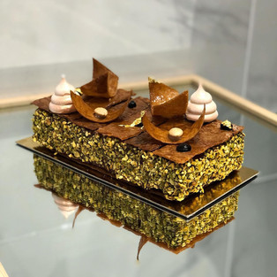 Vous pouvez aussi viser les étoiles avec Alan Geaam (bûche à la pistache ci-dessus), la maison Rostang ou Stéphane Pitré (en photo, à droite).